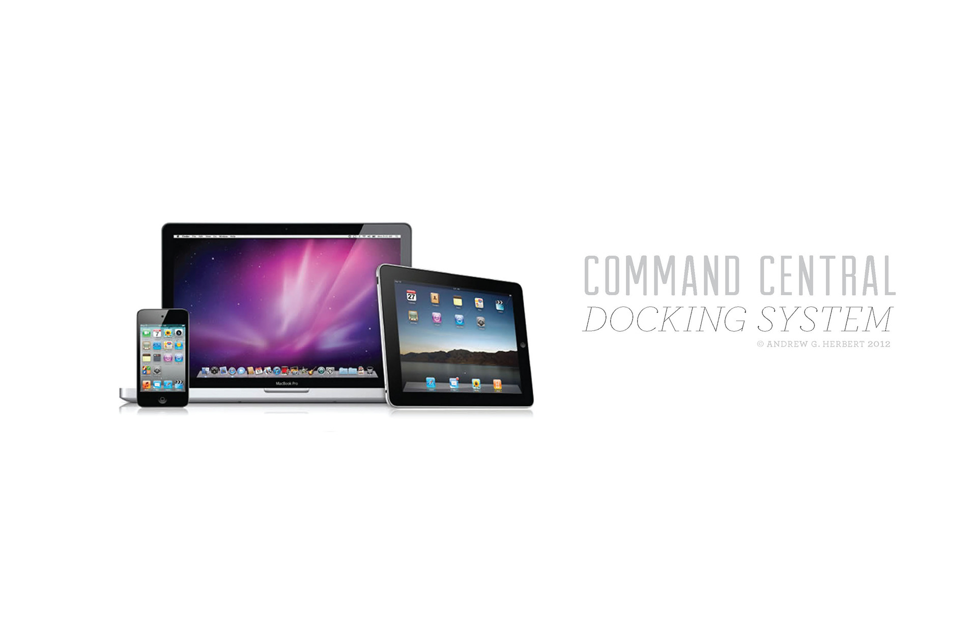 Note: This product is not endorsed by Apple, all photos of Apple products are copyright of Apple Inc. Command Central Docking System is copyright of Andrew Herbert © 2012. Any reproduction of this system or images of this docking system must be attributed to Andrew G. Herbert.