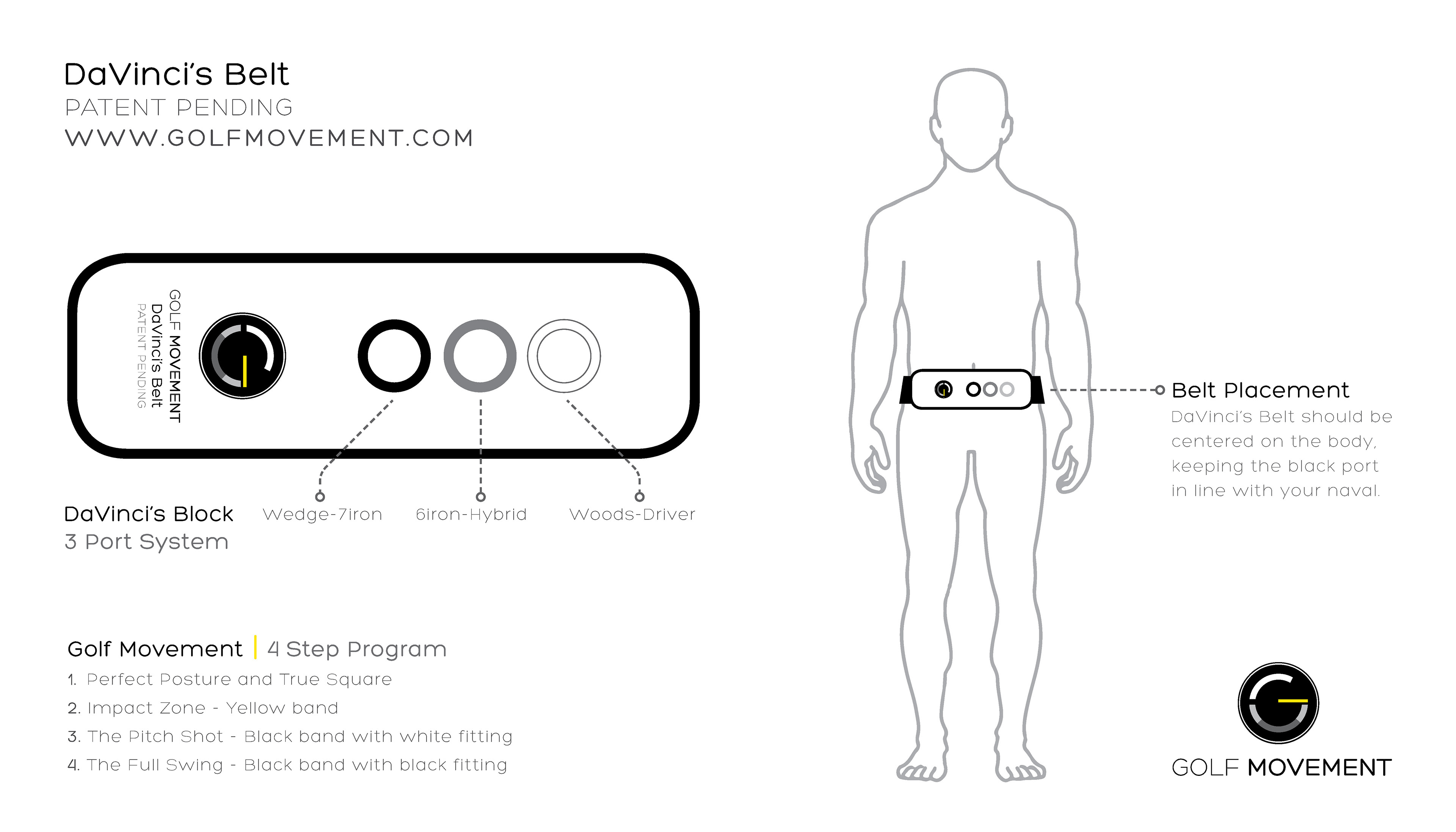 This project was a logo design and branding strategy for Golf Movement's new product, Davinci's Belt. The founder of Golf Movement, Aaron Asedo, has come up with a innovative yet simple way to perfect your swing, lower your scores, and become a more consistent golfer. http://www.golfmovement.com All photography on this project is the work of Mackendrick Studios